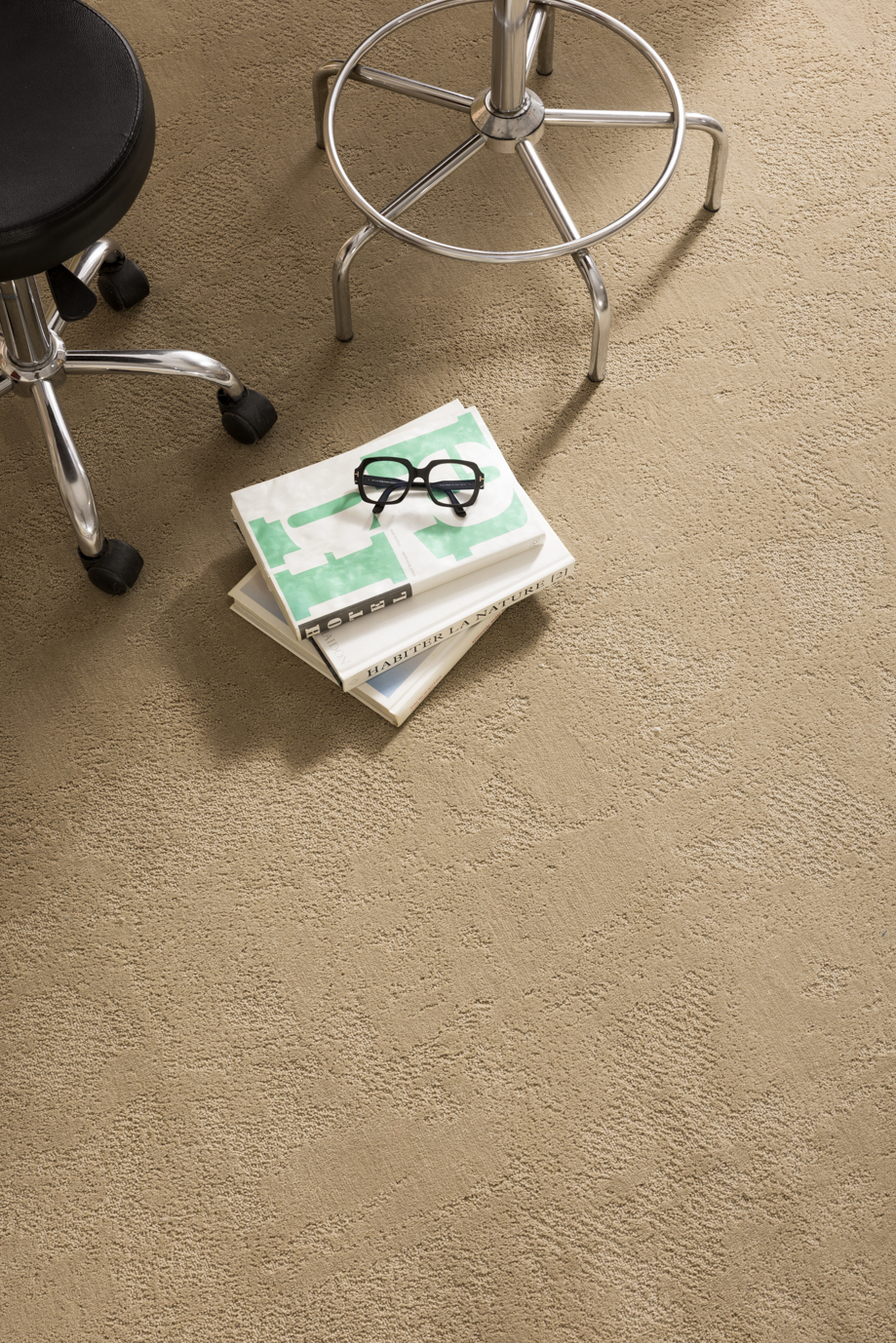 La palette de ce velours riche et nuageux de 1250 g/m² s’est enrichie et se décline désormais en 14 nuances, avec notamment de nouveaux ton chauds (acajou, rouge théâtre, jaune doré…) qui viennent compléter les ambiances minérales (beige granit, gris ardoise, marron santal…). Son motif mouvant, inspiré des coupes de pierres de quartz ou de granit se déploie aléatoirement sur le sol pour apporter sérénité et confort à des chambres d’hôtel ou un bureau de direction.